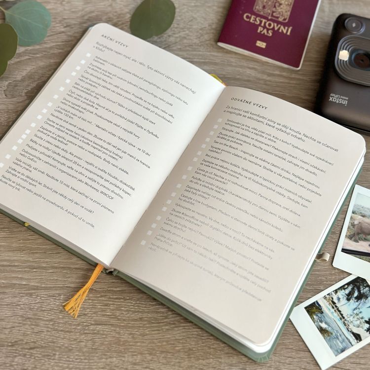Deník na zápis zážitků z cest. Uchovejte své vzpomínky a inspirujte se k různým aktivitám a výzvám.