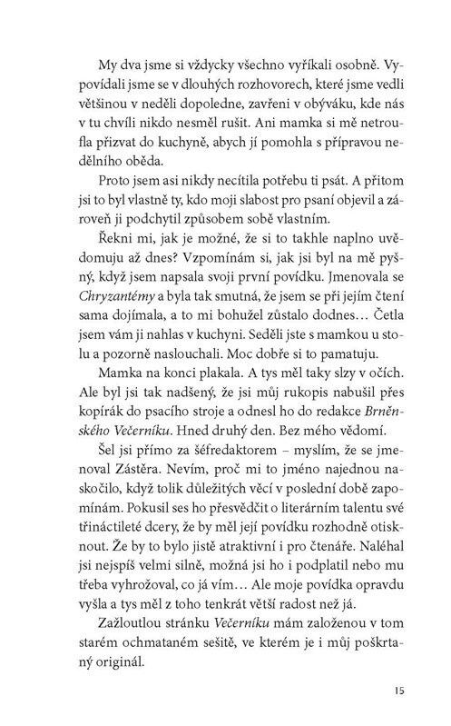 Sama je už v seniorském věku, ale pořád vzpomíná na svého otce. Jednou se mu rozhodne napsat dopis – přímo do nebe. Jenže druhý den se stane něco, co ji odvede od pouhých vzpomínek na idylické dětství. A tak se začíná odvíjet konfrontace s minulostí, z níž vyplouvají pohnuté životní příběhy....
