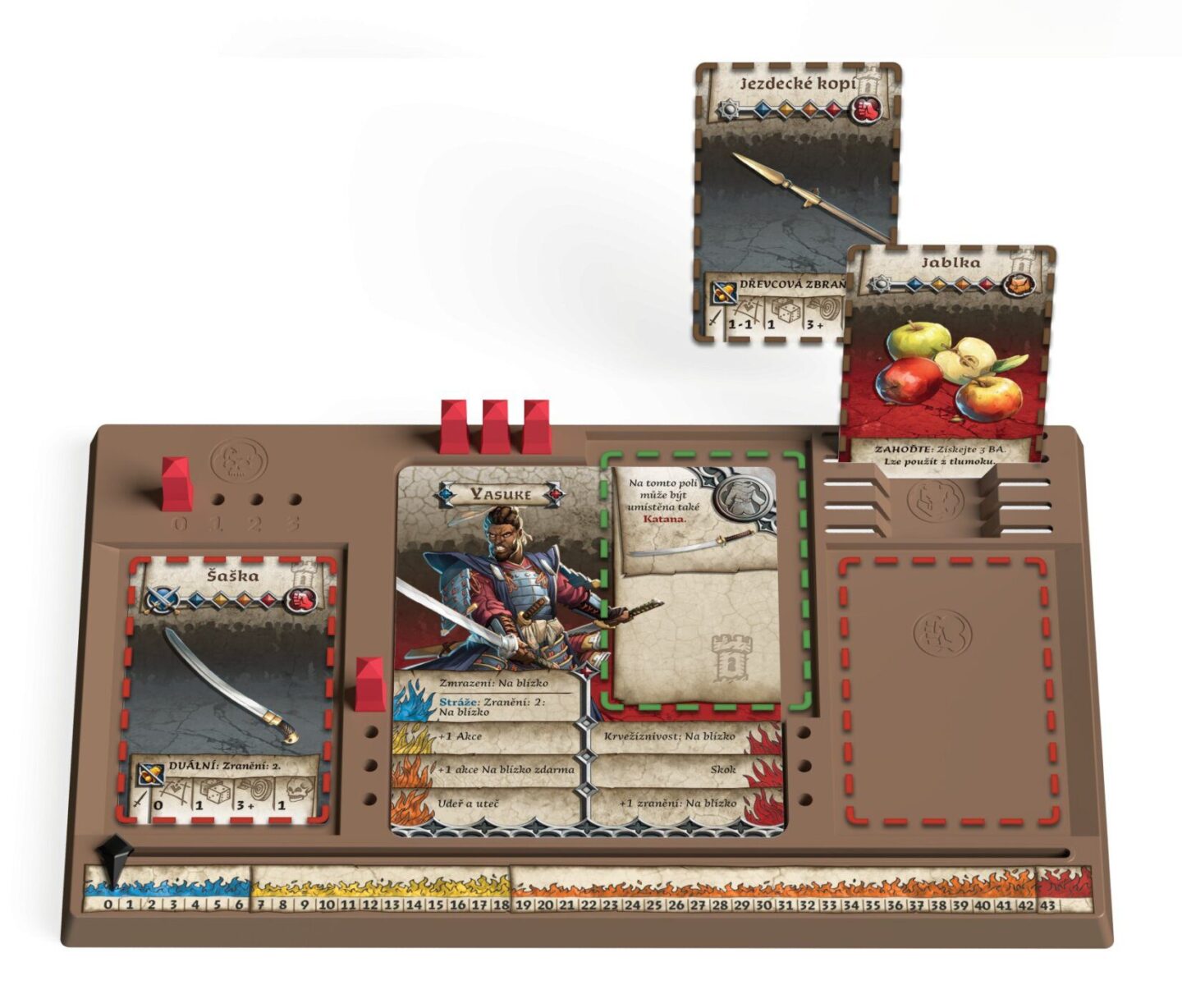 přeživších a karet přeživších 6 barevných podstavců pro přeživší 48 ukazatelů 161 mini karet 64 žetonů česká pravidla