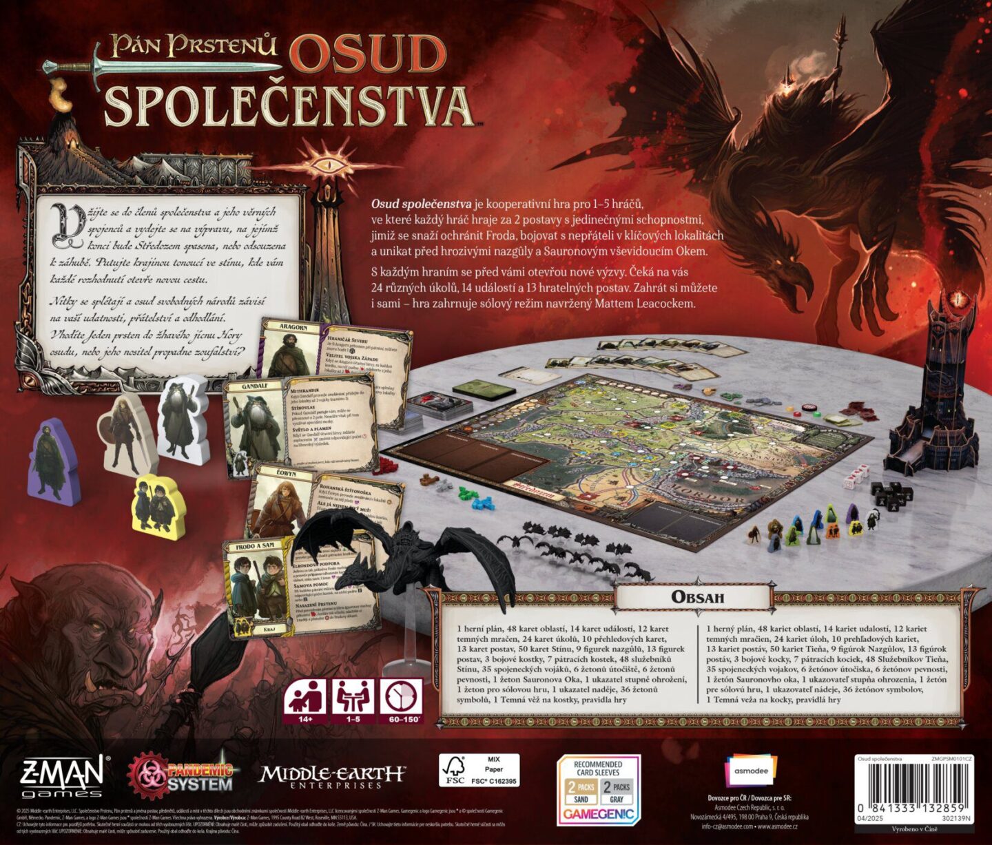 závisí na vaší udatnosti, přátelství a odhodlání. Vhodíte Jeden prsten do žhavého jícnu Hory osudu, nebo jeho nositel propadne zoufalství? Osud společenstva je kooperativní hra pro 1-5 hráčů, ve které každý hráč hraje za 2 postavy s jedinečnými schopnostmi, jimiž se
