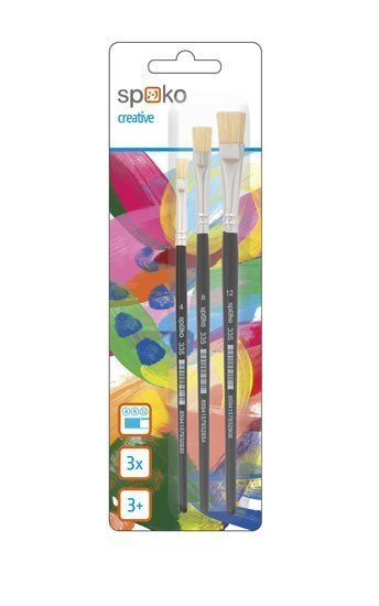 Školní sada plochých štětců v mixu velikostí: 4, 8, 12. Balení: 3 kusy/blistr....