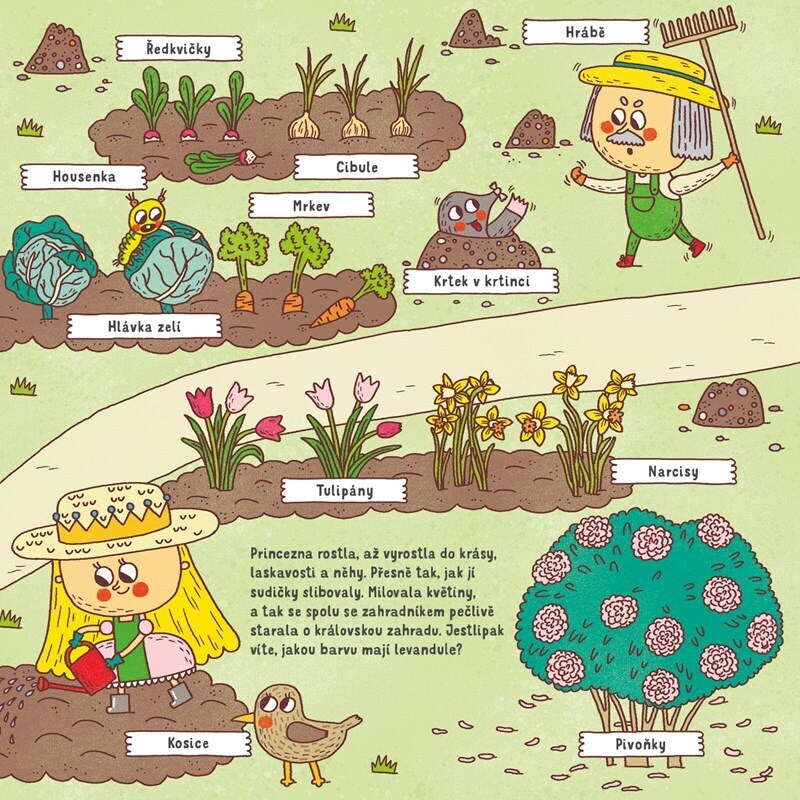 Ospalá Růženka Šípková miluje rostliny a všechnu zeleň snad už od kolébky. Aby ne, když má jméno po té nejkrálovštější ze všech květin. Ale není na světě jen růže. Pojďte se se zámeckou dívenkou projít loukou i zahradou. Naučíte se všemu, co tam žije roste, kvete, bují i...