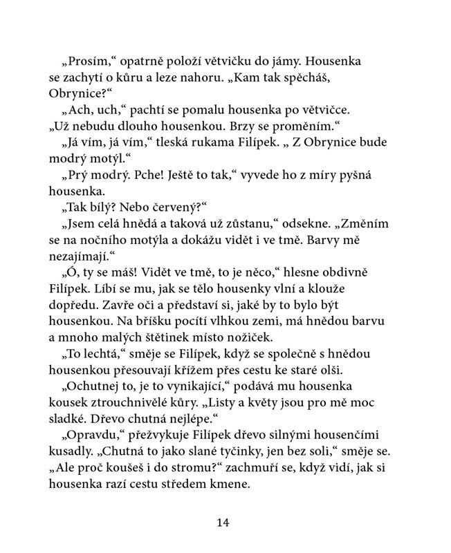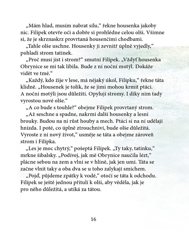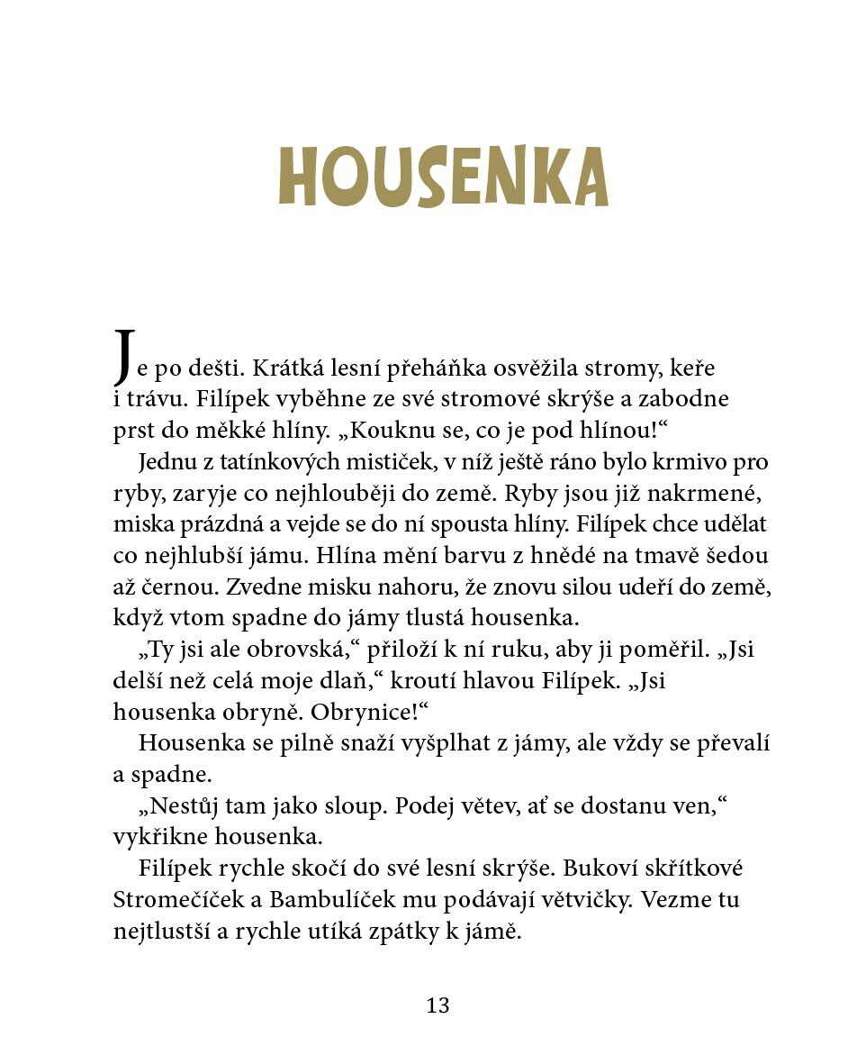 Je po dešti a lesík kolem jezera, kam chodí Filípek s tatínkem na ryby, je krásný a voňavý. Filípka ale rybaření nebaví. Raději si v lese hraje s kamarády skřítky, obdivuje srnky, malé divočáky nebo ve vodě pozoruje pstruhy a bruslařky. Svět kolem jezera Filípek miluje. Brzy půjde poprvé do...