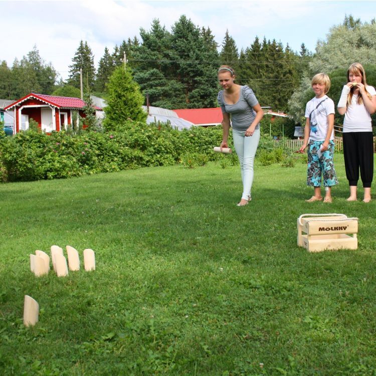 Skvělá venkovní hra z Finska Mölkky je hra vhodná pro každého bez rozdílu věku, pohlaví a fyzické zdatnosti. Mölkky je vynikající způsob, jak poznat nové lidi nebo jak posilovat vztahy s rodinou, přáteli nebo spolupracovníky. Není potřeba žádné fyzické síly, úspěch je