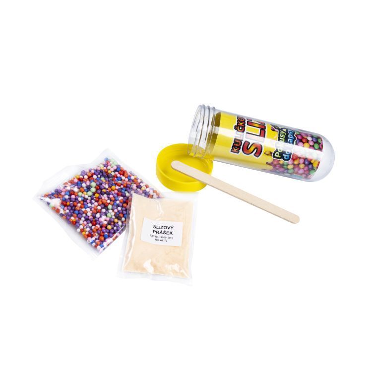 Hravé, jednoduché a zábavné Pokusy do kapsy zabaví děti od 8 let. Vytvořte si zábavný barevný kuličkový sliz přímo ve zkumavce. Sada Pokusy do kapsy - Kuličkový sliz obsahuje: prášek na sliz, míchací tyčinku, pestrobarevné polystyrénové kuličky.