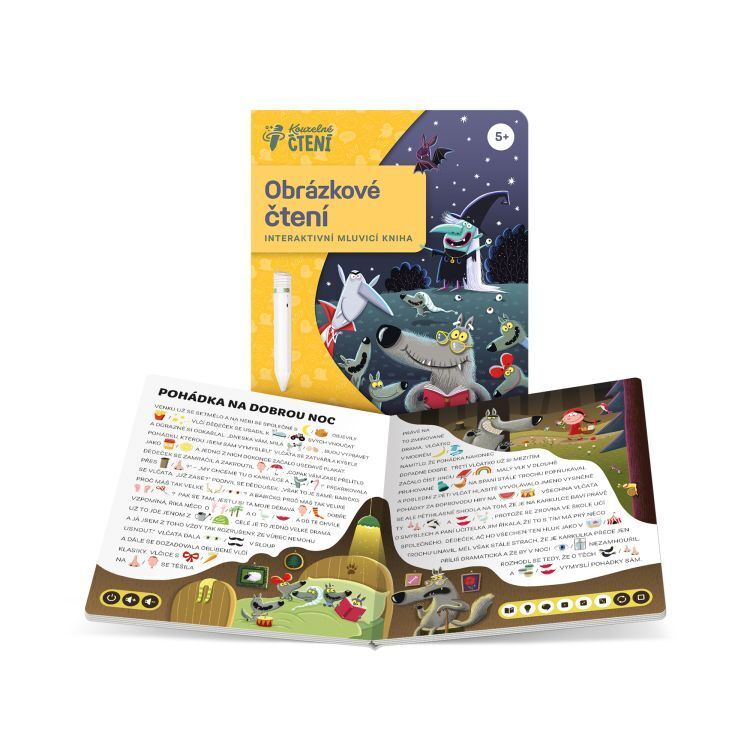 V knize Obrázkové čtení: Pohádky vlčího dědečka najdete 8 příběhů o strašidlech, interaktivní kvízy a plno zajímavostí o našich smyslech. Kniha obsahuje přes 1800 zvuků a textů. Elektronická Albi tužka není součástí balení. Prodává se zvlášť.
