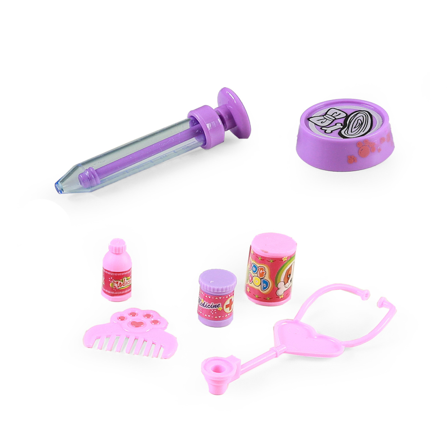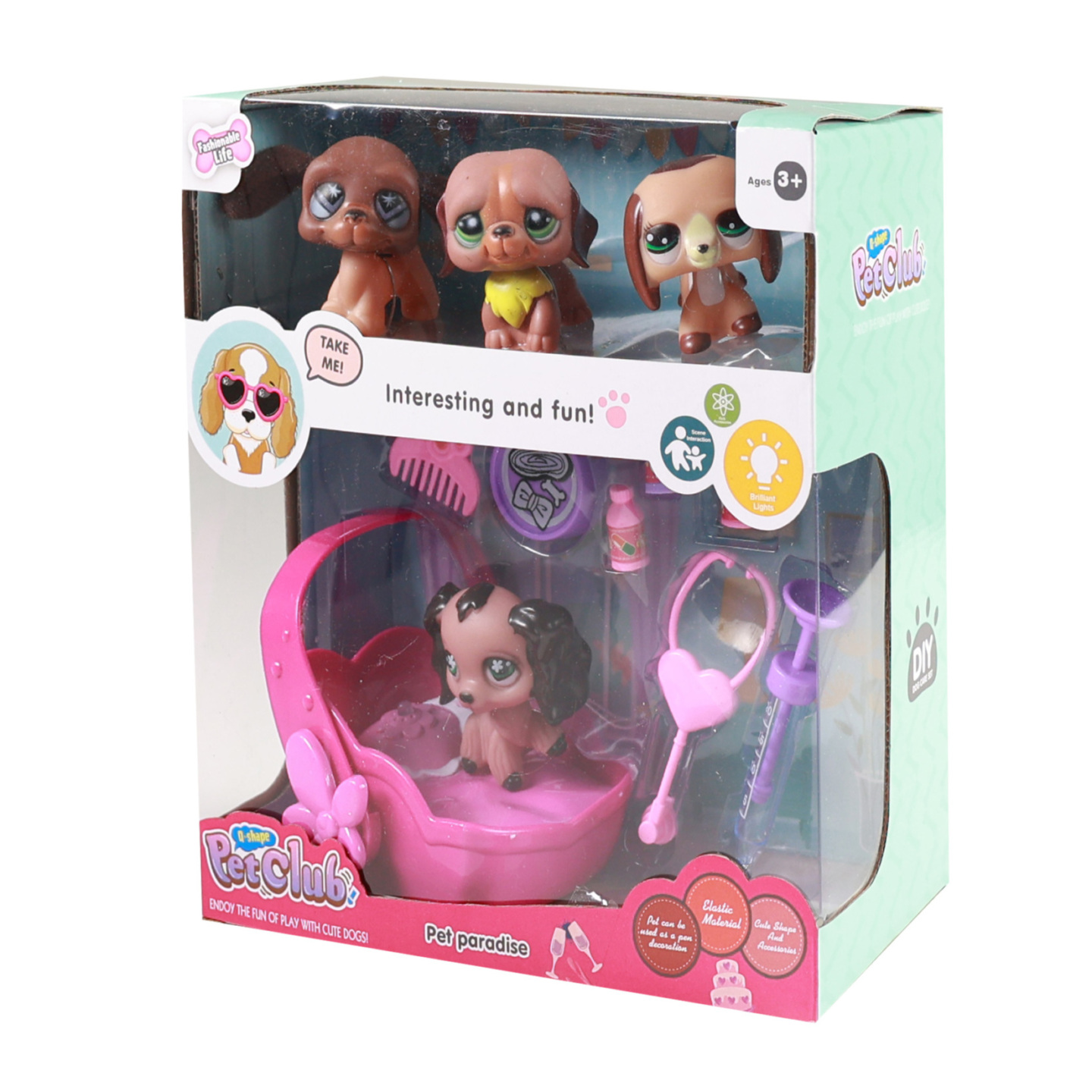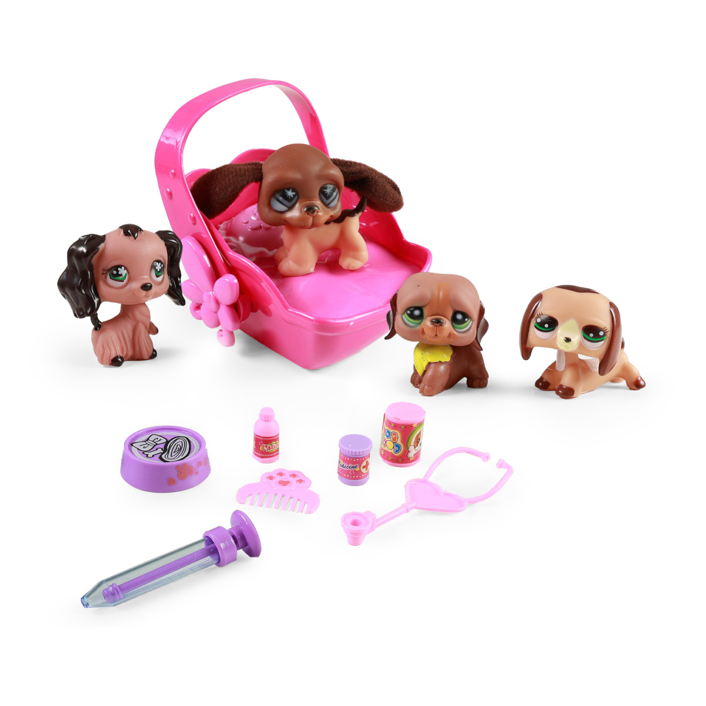 V sadě najdete čtyři roztomilá zvířátka. Zvířátka jsou cca 5 cm vysoká. Balení obsahuje přenosku, která je na dvě AA baterie. Přenoska pro zvířátka hraje a bliká červeným a modrým světlem. Může sloužit i jako pelíšek. V balení rovněž naleznete hřebínek, misku na žrádlo a potřeby pro veterináře,...