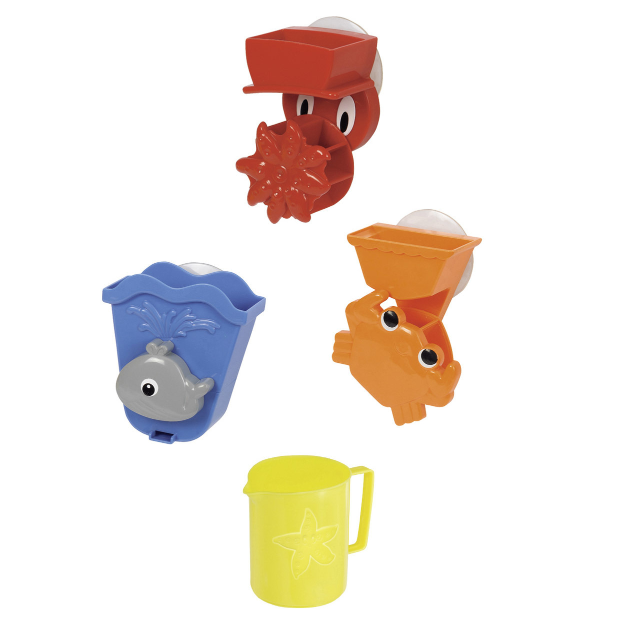 Sada 3 různých aktivit pro hraní ve vaně. Každá s přísavkou. Hrneček součástí. Celkem obsahuje 4 ks.