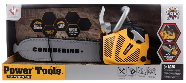 Bateriová motorová pila pro děti je skvělou replikou skutečné motorové pily, ideální pro malé nadšence, kteří si chtějí hrát na dřevorubce.