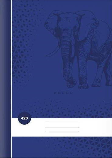 Školní sešit čistý, bez linek ve formátu A4, v tmavě modré barvě, s motivem slona, v deskách z křídového papíru. Typ: 420 Mot...