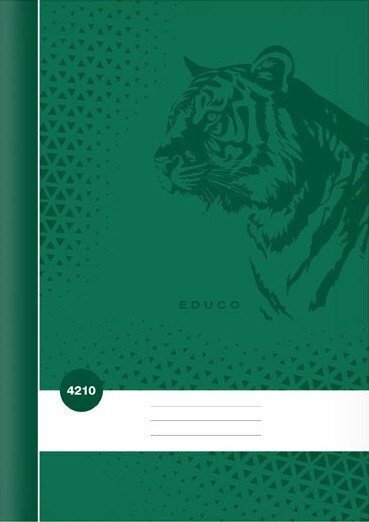 Školní sešit ve formátu A4, čtverečkovaný, v tmavě zelené barvě, s motivem tygra, v deskách z křídového papíru. Oproti běžným čt...