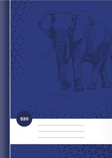 Školní sešit čistý bez linek ve formátu A5, v tmavě fialové barvě, s motivem slona, v deskách z křídového papíru. Typ: 520 Mo...