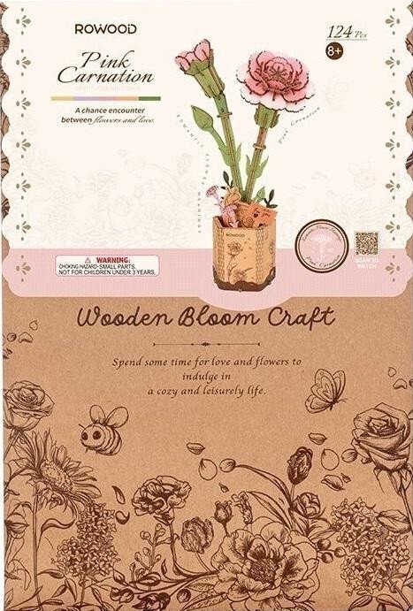 Růžový karafiát symbolizuje náklonnost, lásku a přátelství. Je také často spojován s vděčností a obdivem. Celkově vyjadřuje pozitivní emoce a silné city.br brTato 3D skládačka je skvělým způsobem, jak si užít kreativní a edukativní hraní a zároveň vytvořit nádherný