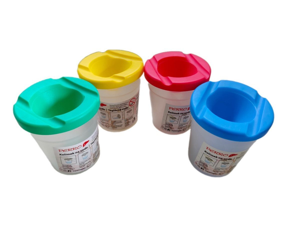 Kelímek na vodu pro výtvarnou výchovu s víčkem, bezpečnostní kónický otvor ve víčku proti vylití vody, plastové provedení, dva o...