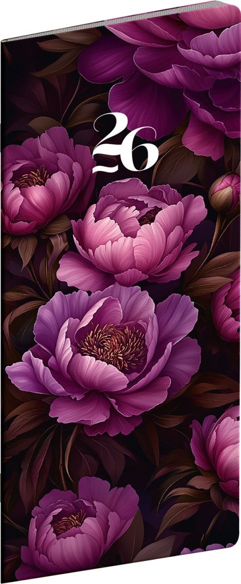 Diář 2026: Fialové květy - plánovací měsíční, kapesní 8 x 18 cm