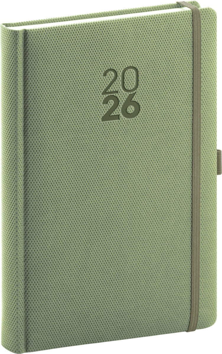 Denní diář Diamante 2026 v olivové barvě. Povrch diáře má jemnou strukturu připomínající výbrus diamantu a je ideální pro všechn...