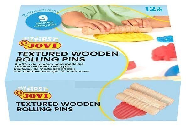 Dřevěné válečky JOVI se 3 různými reliéfy jsou dokonalým doplňkem pro objevování všech možností naší plastelíny Baby. Jejich dřevěný povrch přispívá k posílení smyslové stimulace a snadnému používání pro nejmenší. Kromě toho, že jsou bezpečné a odolné, jsou