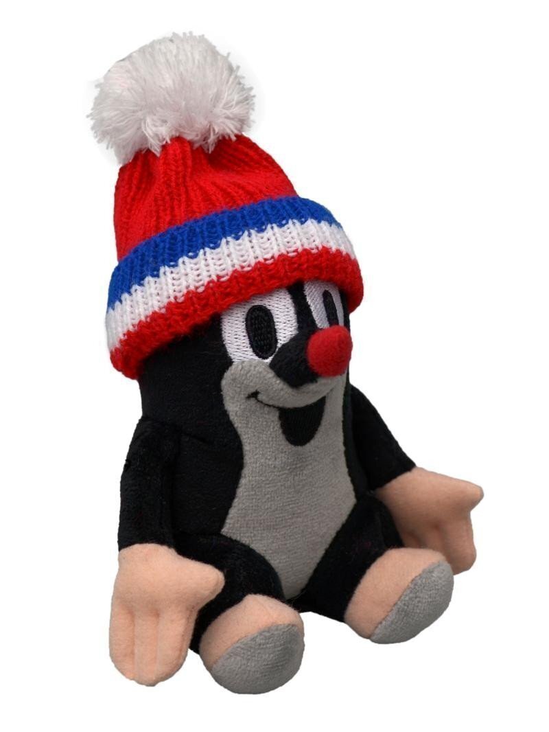 Krtek 14cm sedící, kulich červená-trikolóra