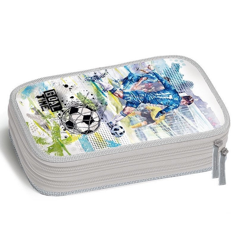 Dvoupatrový školní pouzdro GOAL TIME. br• penál nabízí dva úložné prostory pro úschovu psacích potřeb a dalších školních pomůcek br• uzavírání obou pater je pomocí zipu s poutky pro lepší manipulaci br• v první komoře se nacházejí gumičky na pravítko,
