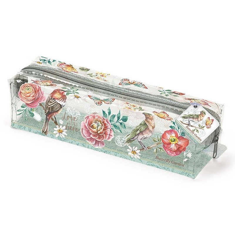 Penál průhledný s barevným potiskem Butterfly Garden