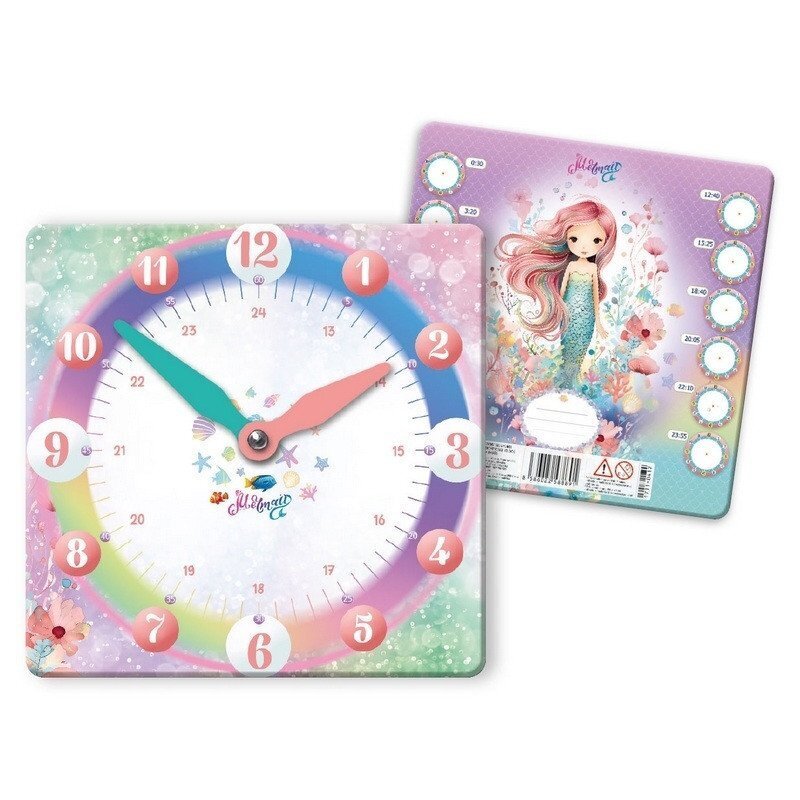 Papírové dětské hodiny na výuku Mermaid. • obsahují ciferník se zvýrazněnými čísly 3, 6, 9 a 12 také čísla od 1 po 12 a minutov...