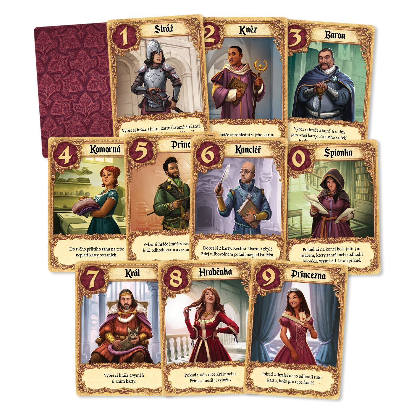 kartu s nejvyšší hodnotou nebo zůstanete poslední ve hře. Hru vždycky začínáte s jednou kartou v ruce. Na začátku tahu si doberte z balíčku jednu kartu. Potom si vyberte jednu ze svých dvou karet, zahrajte ji a vyhodnoťte její efekt. Efekty některých karet vás mohou vyřadit ze