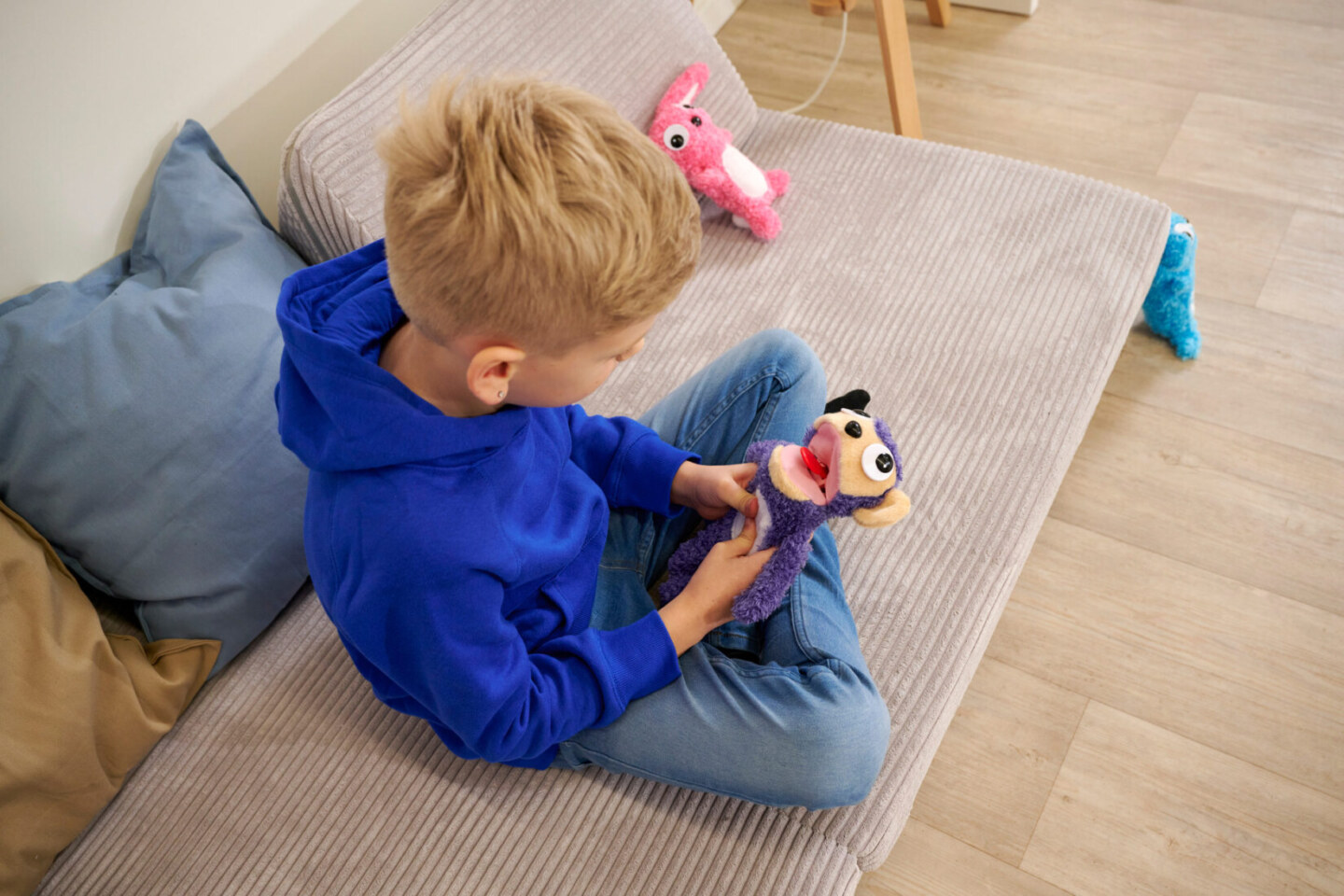 ScreamerZ, zábavný plyšák s bláznivýma očima a legračními zvukovými efekty. Lehce mu stiskni bříško a vydá roztomilý zvuk, stiskni více a začne křičet, stiskni ještě více a zatřepej s ním a on bude roztřeseně ječet. Velikost 30 cm. Barva fialová.