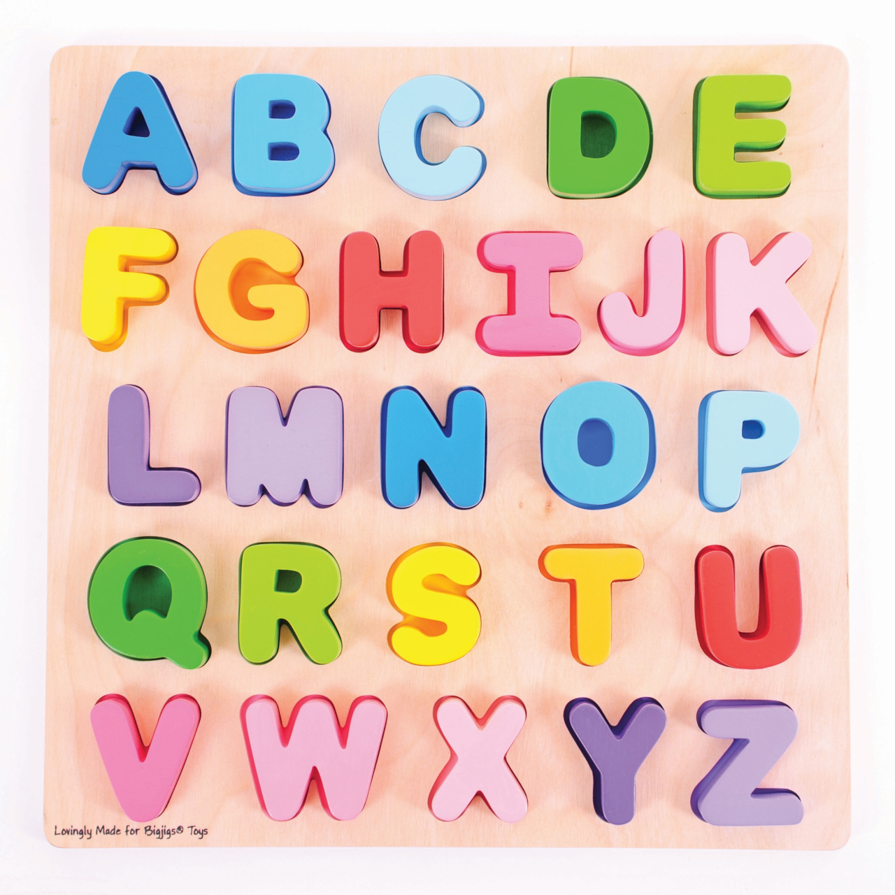 Pomocí této dřevěné pestrobarevné abecedy bude pro děti učení písmenek hračka. Každé písmenko je barevně sladěno se svým základním otvorem, což pomáhá rozvíjet schopnost vzpomínání a rozpoznávání. Dílky jsou robustní, akorát pro malou dětskou ručku. Pro toto vkládací puzzle je charakteristická...