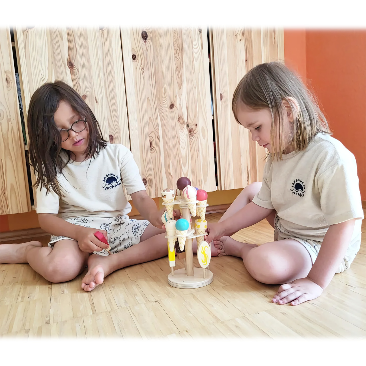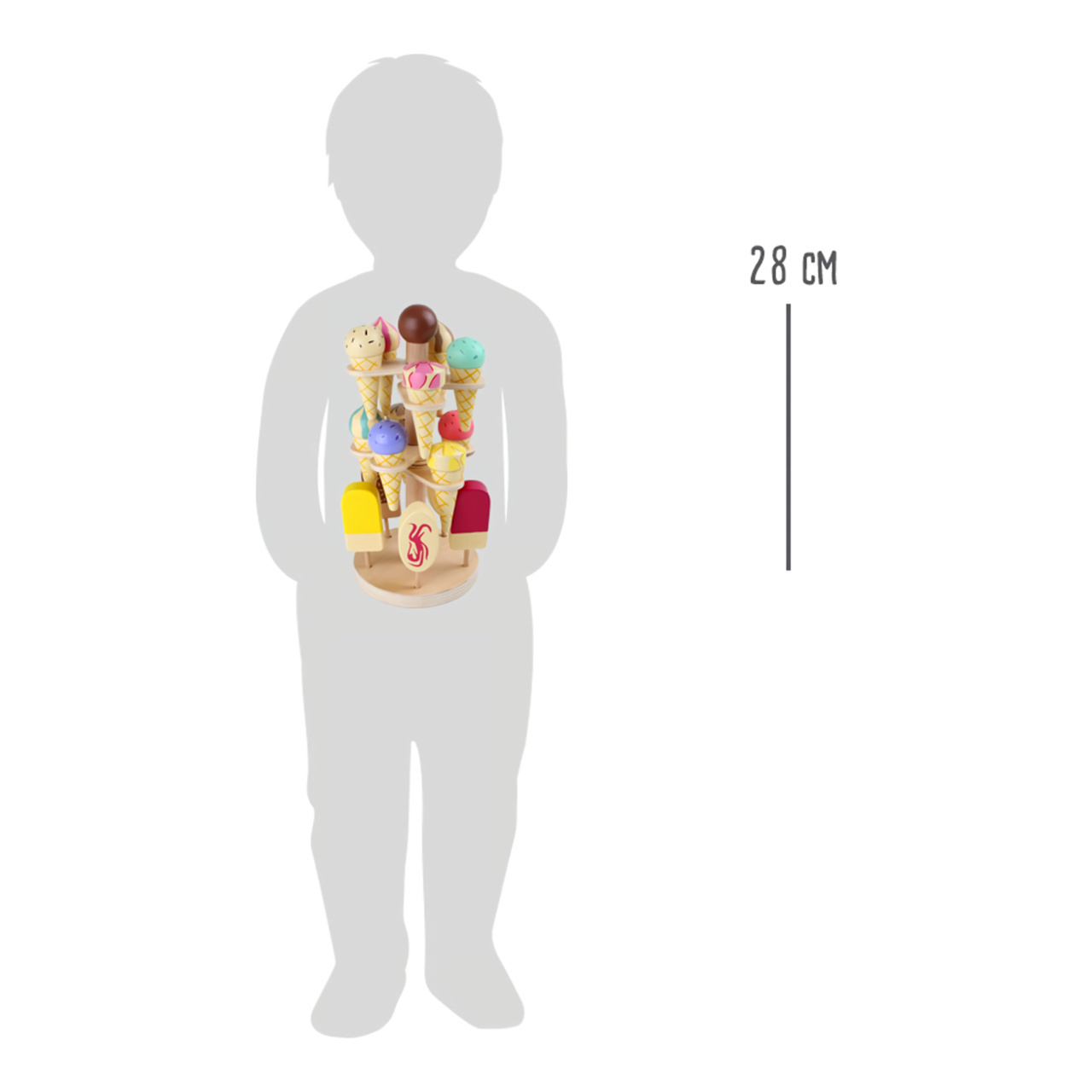 nabídky stánků a obchodů, nebo ji doplnit o jejich příslušenství, například pokladnu. Svou barevností zpestří každý dětský pokojíček. Zmrzliny v kornoutech lze vkládat do kruhových otvorů, které lze rozvinout kolem ústředního sloupku stojanu. Do děr v jeho podstavci