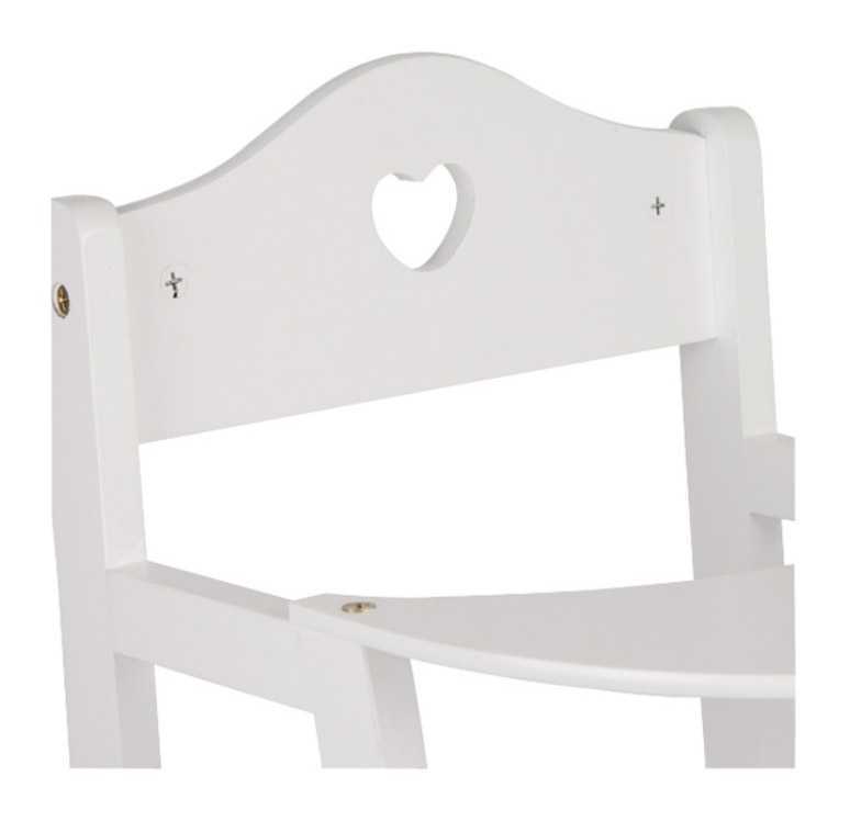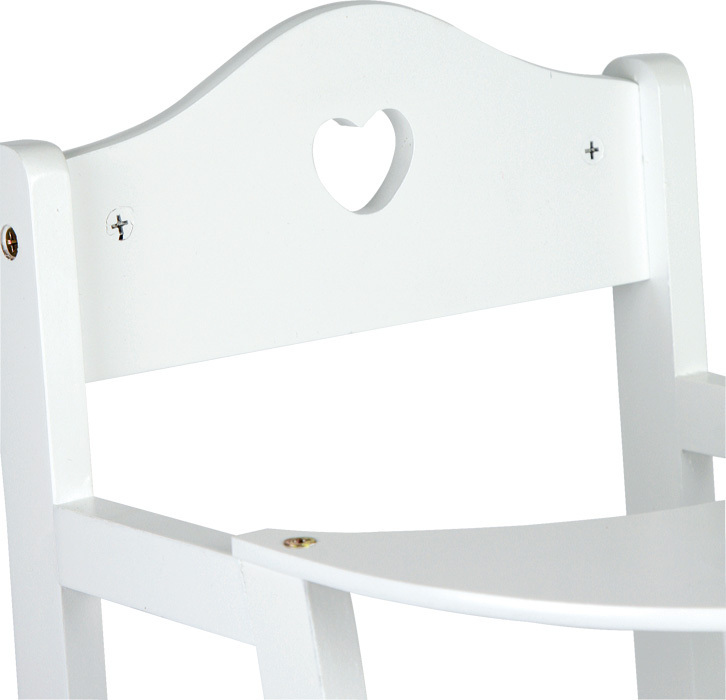 Tato jednoduchá dřevěná jídelní židlička rozbuší srdce všech panenek. Natřená bílou barvou a zdobená malým výřezem srdce je stylovým doplňkem, dětského pokojíčku. Díky svému neokázalému stylu se tato jídelní židlička ideálně hodí do dětských pokojů, ale také do obývacích pokojů. Hlavní...