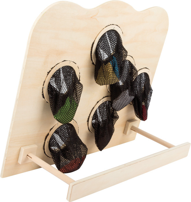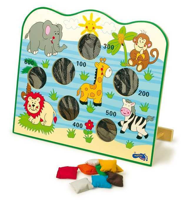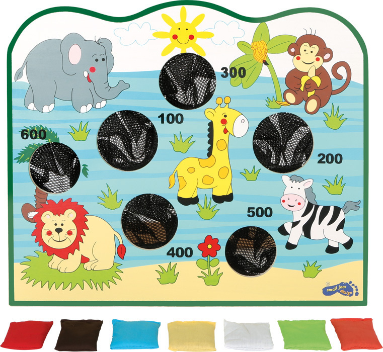 Barevná hra na házení do otvorů se síťkou malými barevnými pytlíčky. Otvory se liší velikostí a čím menší je otvor, tím těžší je se trefit. Ale počet bodů motivuje - zkuste to! Tato hra zabírá málo místa a je ideální pro hraní v místnosti! Hlavní vlastnosti: procvičuje koordinaci ruka-oko a...
