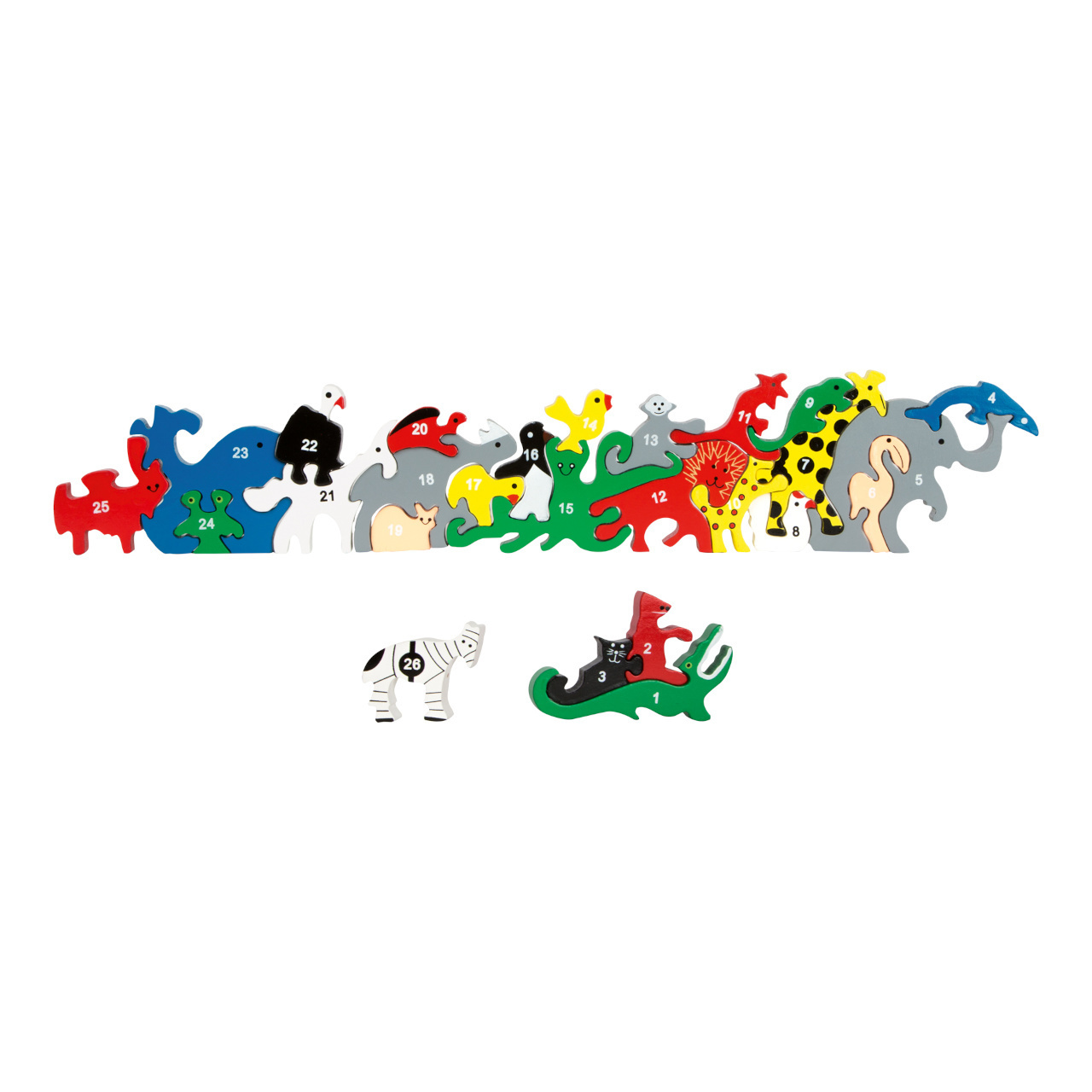 Kdo dokáže seřadit dřevěná zvířátka do správného pořadí? Dřevěné díly ve tvaru zvířat jsou výzvou pro všechny nadšence skládaček. Čísla 1-26 na jedné straně a abeceda na druhé straně pomůžou při skládání. Hlavní vlastnosti: obsahuje 26 zvířátekčísla na jedné straně a na druhé...