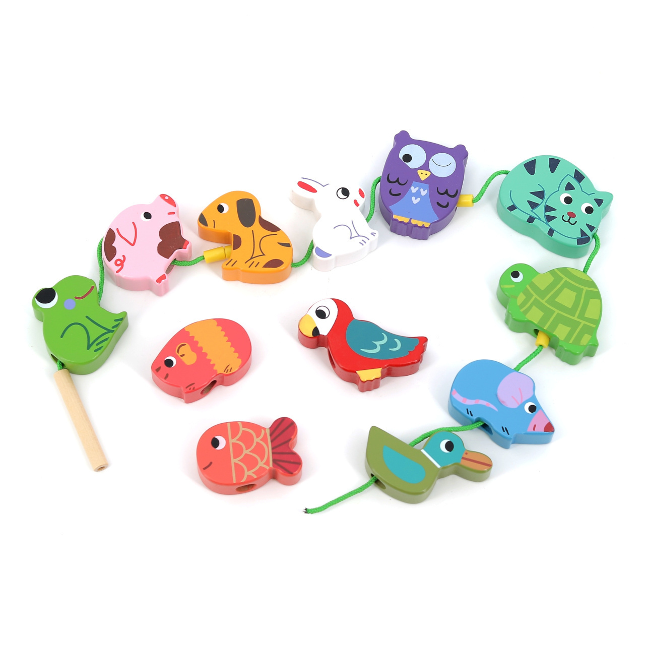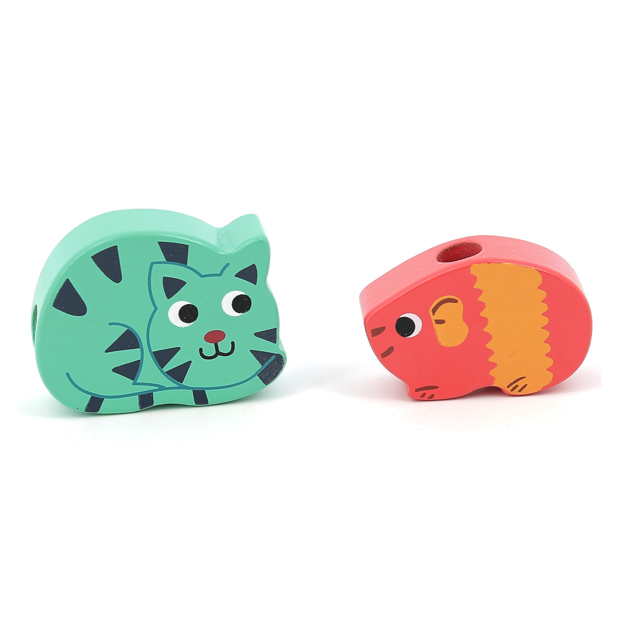 Krásná provlékačka s motivy zvířátek. V kompaktním balení najdete 12 ilustrovaných dřevěných korálků (např. kočka, myš, králík, žába), které děti mohou navlékat na textilní šňůrku. Hračka pomáhá s rozvojem jemné motoriky. Vybaveno bezpečnostními sponami. Vhodné od 18 měsíců. Hlavní vlastnosti:...
