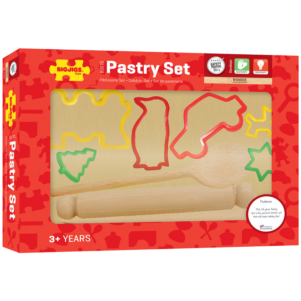Ideální sada pro zábavu při pečení! Obsahuje vařečku, stěrku, prkénko a váleček. Dodáváno se šesti pestrobarevnými vykrajovátky na pečivo, včetně hvězdy, auta, psa, vánočního stromku, vláčku a tučňáka. Splňuje aktuální evropské bezpečnostní normy. Skládá se z 10 dílů. Hlavní vlastnosti: obsahuje...