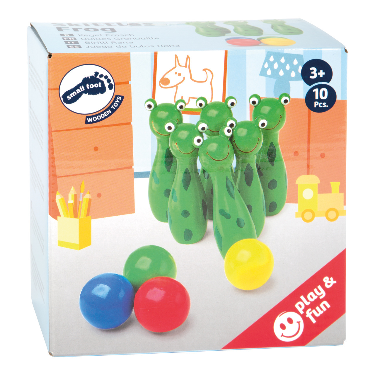Tato malá dřevěná kuželková hra poskytuje spoustu zábavy, protože kuželky mají vzhled žabek. Obratnost a koncentraci lze snadno trénovat. Veselé žabky potěší naše nejmenší při hraní! Hlavní vlastnosti: procvičuje obratnost a koncentraciobsahuje 10 kusů - 4 koule a 6...