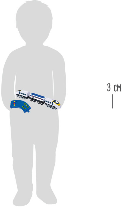 Moderní lokomotiva z plastu a dřevěného vagónku s dálkovým ovládáním, má celkem 8 funkcí. Lokomotivu můžete ovládat do dvou směrů, po stisknutí tlačítka vydává zvuky(hlášení z reproduktoru, signál brány, píšťalka průvodčího, zvuky jízdy, přejezd přes most), dokonce můžete zapnout i světla....
