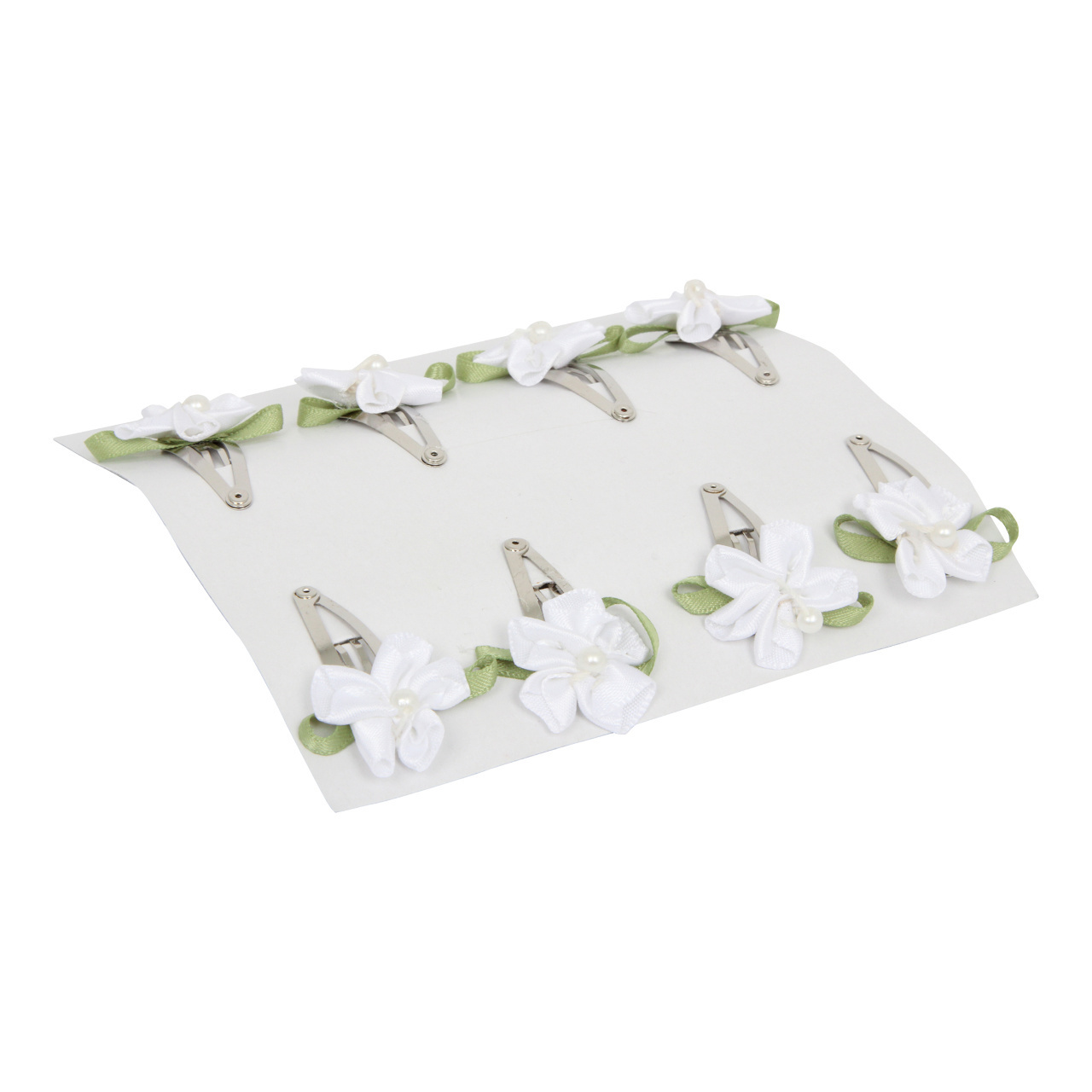 Sada 32 ks. Kouzelnou ozdobou pro neposedné vlásky jsou tyto sponky s motivem květů! Stříbrné spony drží vlasy pohromadě a květinky s mašličkami jsou poutačem pohledů malých slečen. Vždy 4 páry stejného motivu mohou být použity i jako okrasa mašlí na dárcích nebo doplněk květinové...