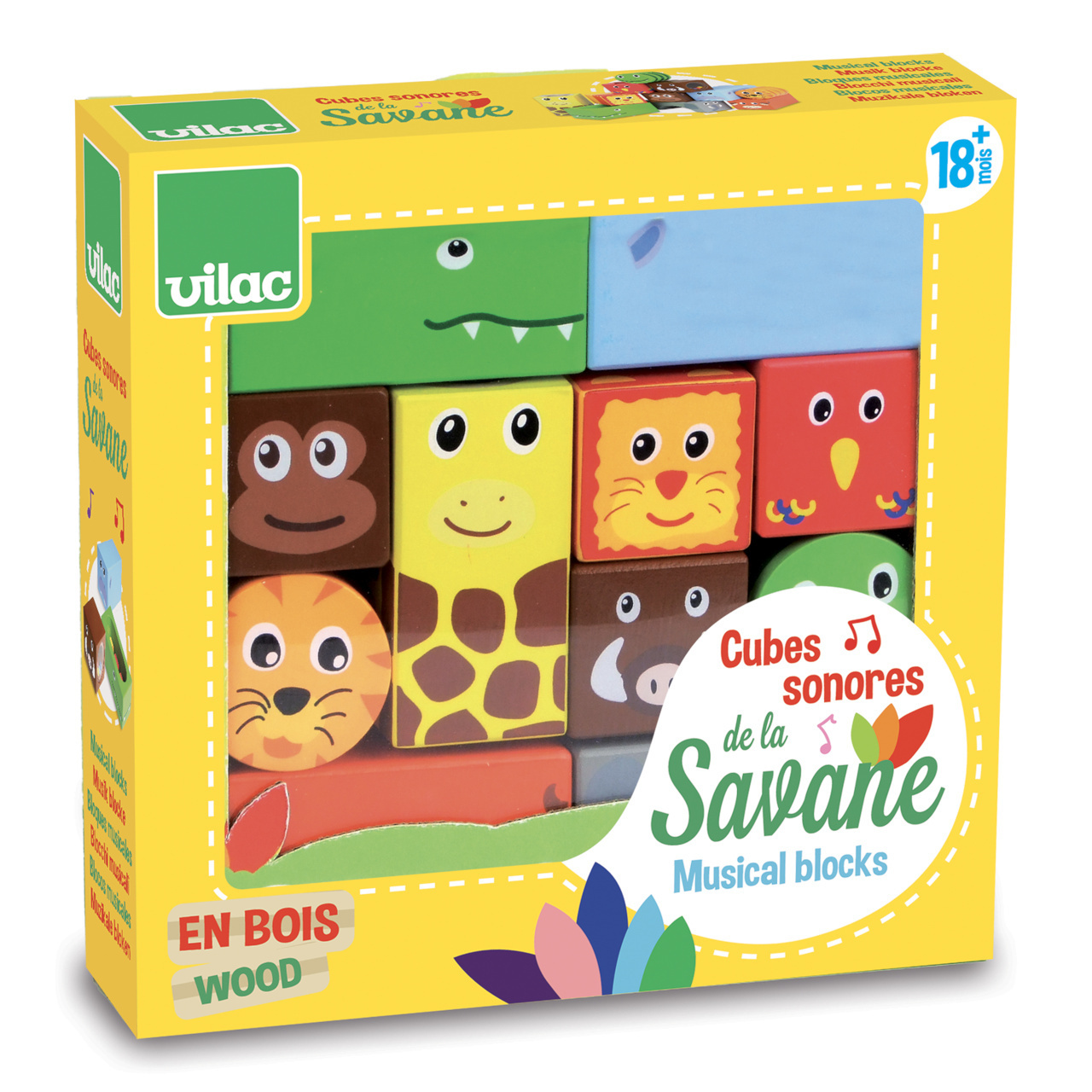 Vilac Dřevěné zvukové kostky Savana