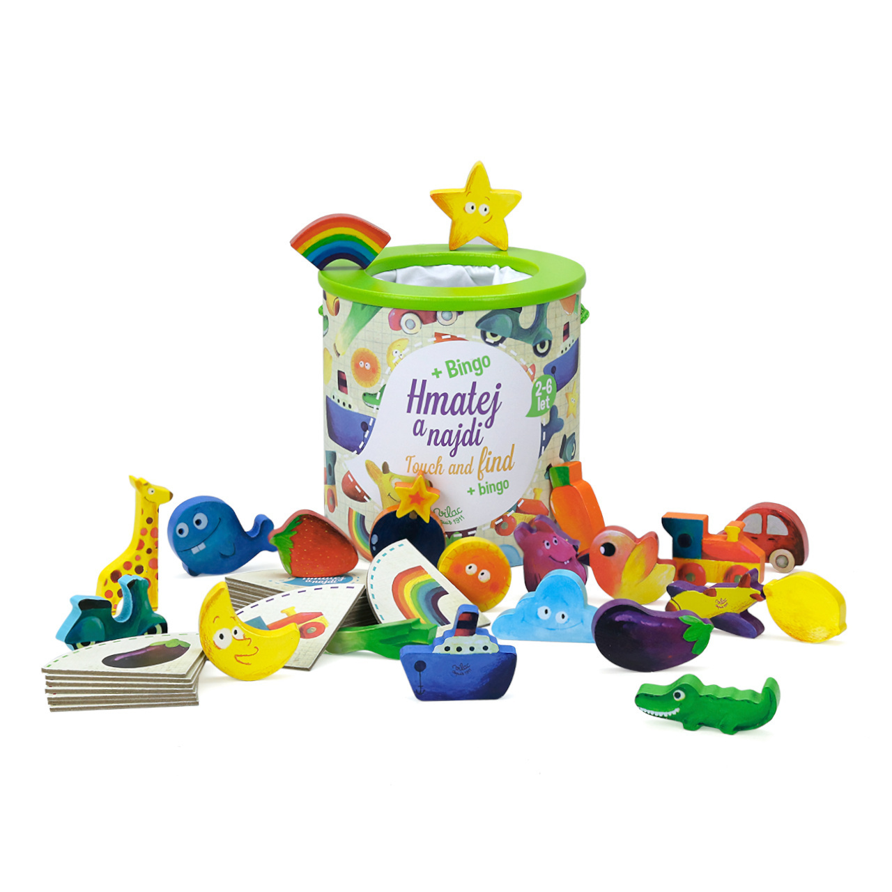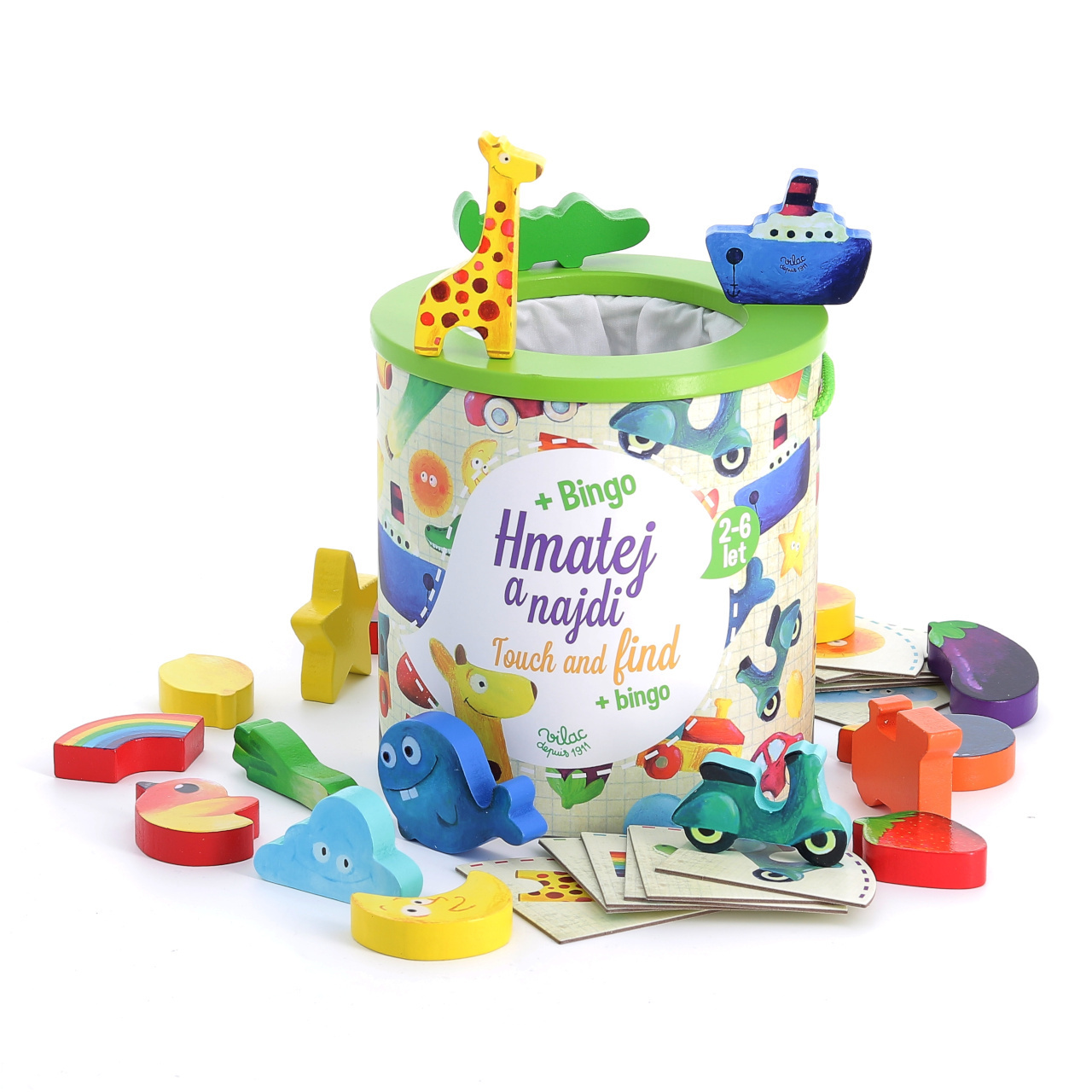 Nepřekonaný bestseller Vilac se originálním způsobem snaží rozvíjet často opomíjený smysl dětí, hmat. Hra je tvořená zejména dřevěnými figurkami ukrytými v kyblíku vybaveném uvnitř jemným látkovým sáčkem. Menší děti mají za úkol po vložení ruky do tuby jen na