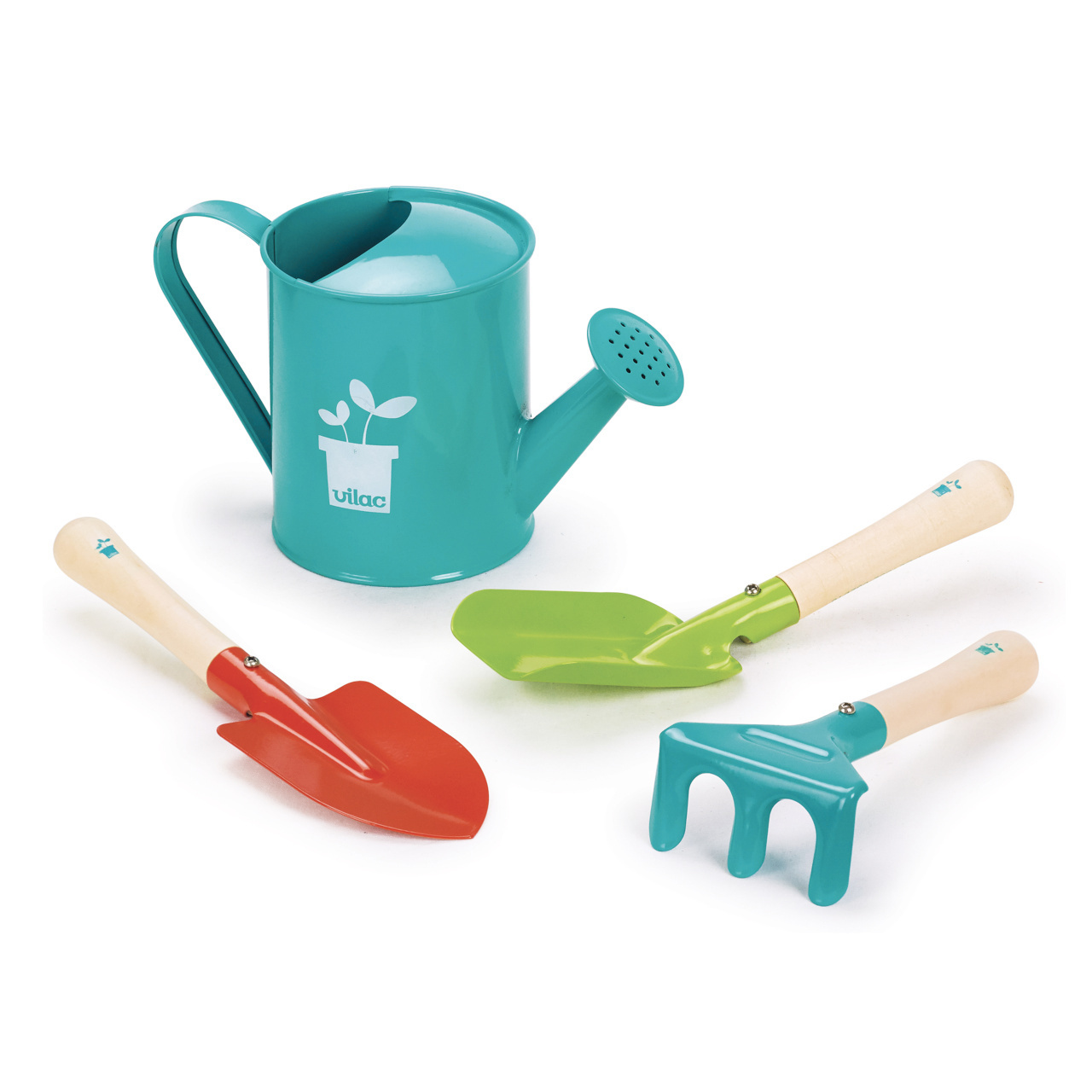 Přenosný set malých zahradníků. Tento velmi kvalitní zahradnický set obsahuje lopatku, hrábě, rýč a konvičku. Taška se dá jednoduše vyprat, nářadí omýt vodou. Nářadí je vyrobeno z masivního dřeva a kovu, velikostně tak akorát pro dětské ruce. Pojďme na zahradu! Hlavní vlastnosti: ideální...