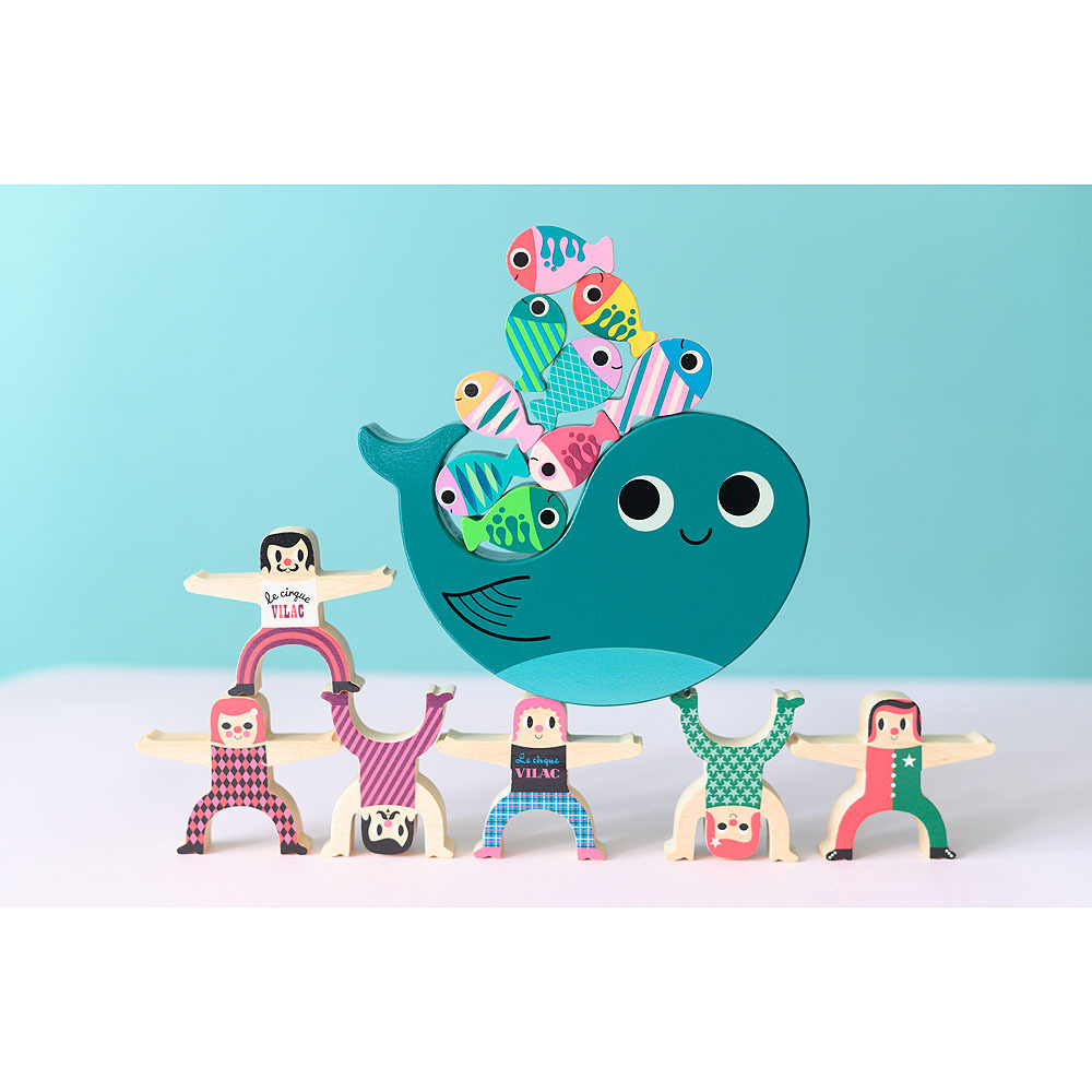 Dvanáct dřevěných figurek akrobatů, s kterými si můžete zahrát balanční hru. Jednoduše skládejte postavičky různě na sebe. Ten, komu akrobati spadnou, prohrál. Ilustrováno Ingelou P. Arrhenius. Hlavní vlastnosti: trénuje trpělivost a logické myšlenídesign Ingela P.