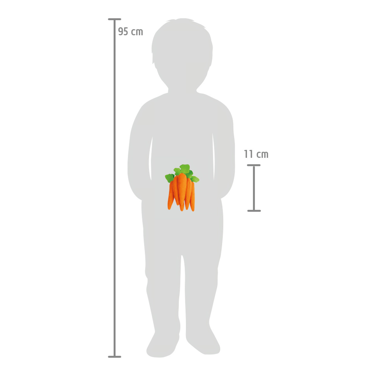 Balení obsahuje 7 ks plstěných mrkviček. Tyto mrkve upoutají pozornost a doplní každý zelinářský obchod. Mrkvičky se také skvěle hodí jako krmivo koně, poníka nebo králíčka. Hlavní vlastnosti: doplněk do dětské kuchyně, obchodu s potravinami nebo jako krmivo na farmu