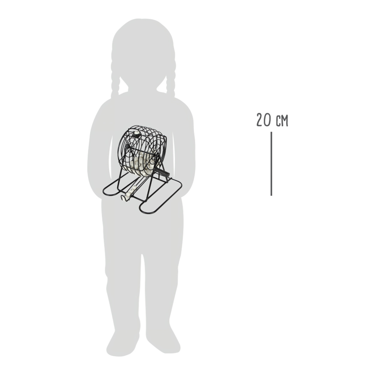Klasická soutěžní hra "Bingo" s barevnými žetony, bílými kuličkami, plastovým zásobníkem a losovacím kovovým bubnem. Každý hráč si může vybrat svou vlastní barvu žetonů. Klika otáčí bubnem a jakmile se změní směr, první očíslovaná kulička spadne do přihrádky. Komu se podaří umístit správnou...