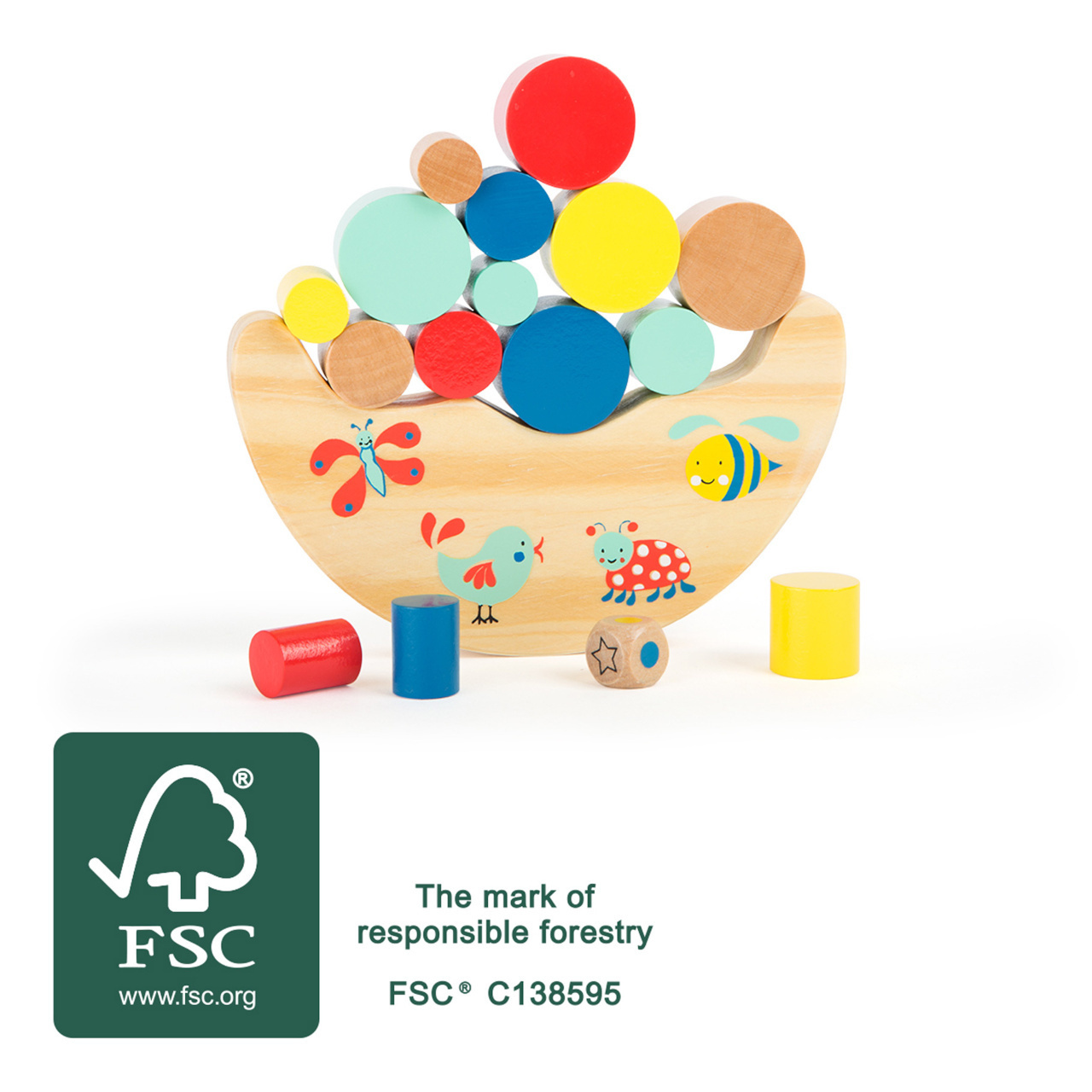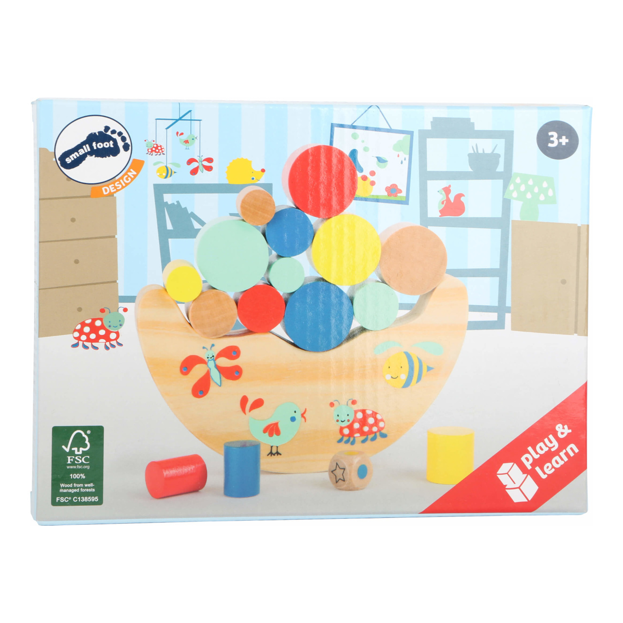 Komu se podaří naskládat tu nejvyšší věž? Velkou výzvou, ve které musí být všechny herní kousky vyrobené ze 100% certifikovaného dřeva FSC® umístěny na vratké houpačce. Obrázek ukazuje, který kus je umístěn jako první. Hlavní vlastnosti: rozvíjí jemnou motoriku