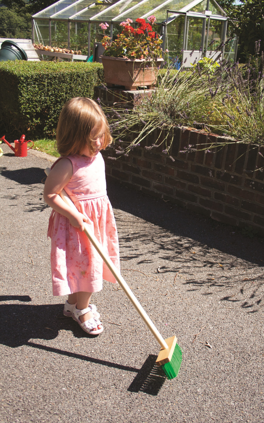 Bigjigs Toys Zahradní metlička s dlouhou násadou zelená