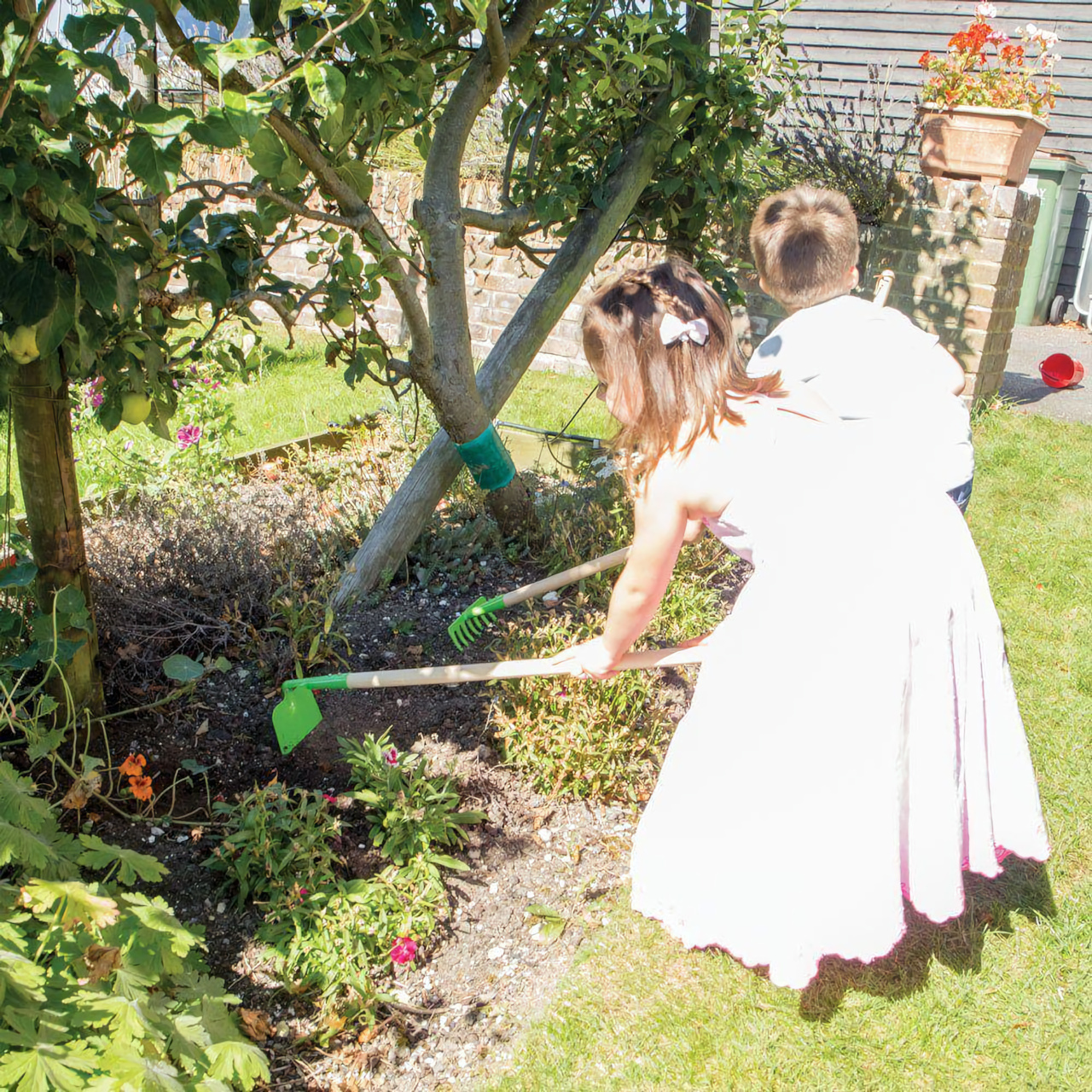 Malí zahradníci si zamilují robustní zahradnické hrábě zelené s dlouhou rukojetí. Ideální při práci na zahradě s mámou a tátou. Zahradní doplňky dostupné v zahradnickém sortimentu Bigjigs Toys zahrnují zahradnický pás, tašku s nářadím, zahradnické rukavice, nářadí s dlouhou rukojetí, konve,...