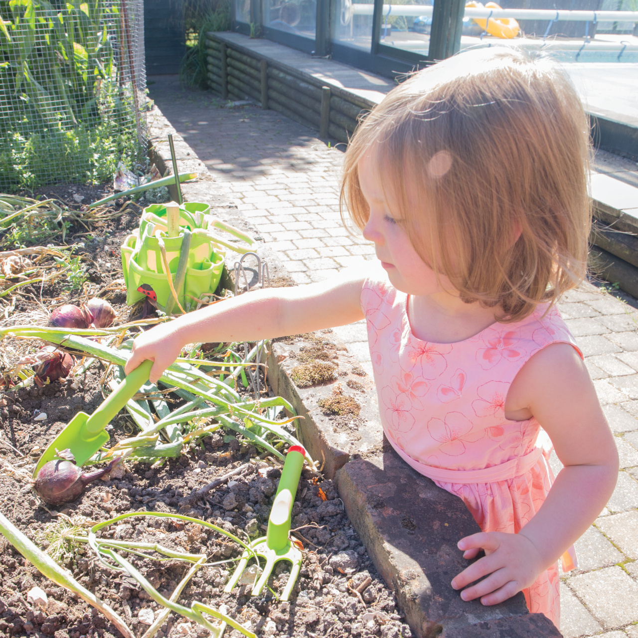 Zahradní set nářadí v zelené barvě obsahuje 3 ks plastového nářadí pro sázení rostlin. Zábavná, bezpečná a odolná sada zahradního ručního nářadí speciálně navržená pro nejmenší ve věku 18 měsíců. Jedná se o pevné jednodílné plastové zahradní nářadí, které bylo vytvořeno tak, aby ergonomicky...