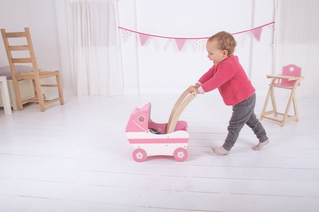Bigjigs Toys Dřevěný kočárek pro panenky