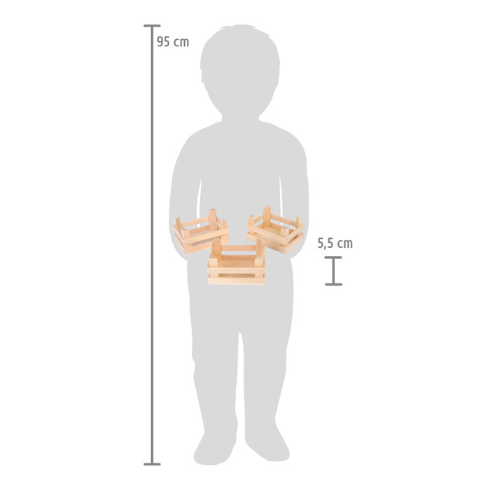 Pevné a odolné dřevěné bedničky jsou všestranně využitelné. Lze jimi doplnit některý z široké nabídky stánků ke hrám na prodavače, stejně tak ale mohou posloužit k třídění a udržování pořádku, ať už v dětském pokoji, nebo na zahradě. Díky přírodní úpravě je můžete natřít a nalakovat dle své...