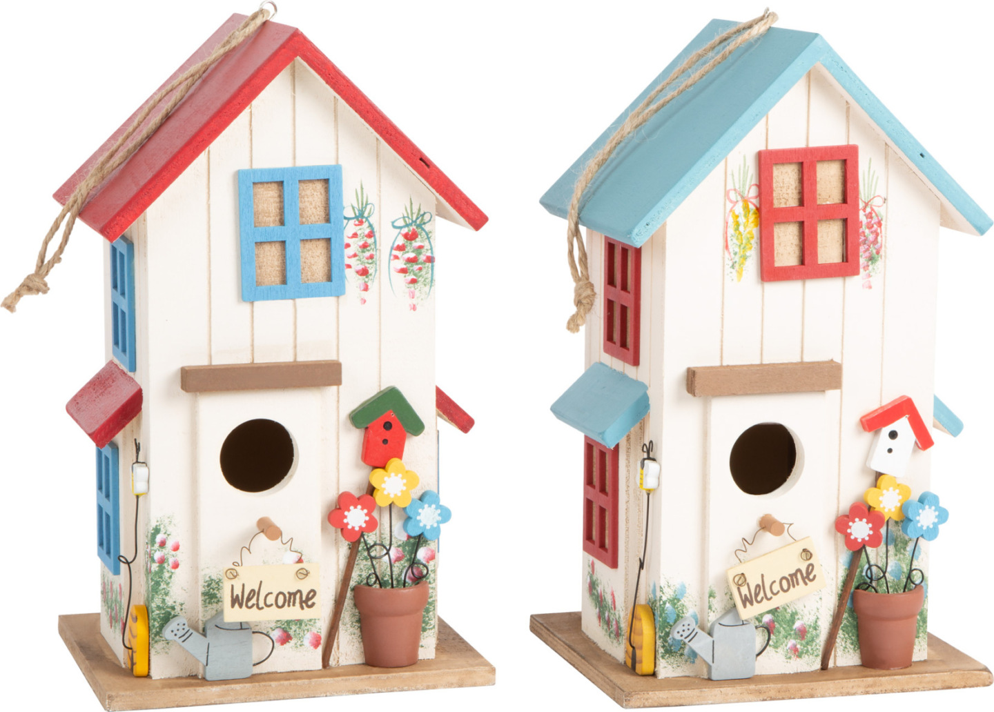 Tyto malé domečky mají mnoho detailů jako okenice, ozdoby, balkón či terasu a jsou překrásným bydlištěm pro ptáčky. V zadní části najdete otevíratelná vrátka, ze shora poutko k zavěšení. Vyrobeno z glazované překližky. Hlavní vlastnosti: možnost sledovat hnízdění ptáčkůkrásný...